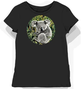 Koszulka damska czarna z nadrukiem szarego koali w zieleni M