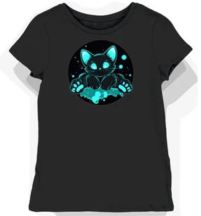 Koszulka damska czarna z nadrukiem turkusowego kota XS - Koszulka damska idealna na prezent! KozakNadruki – Polska marka i autorskie projekty! Stawiając na K...