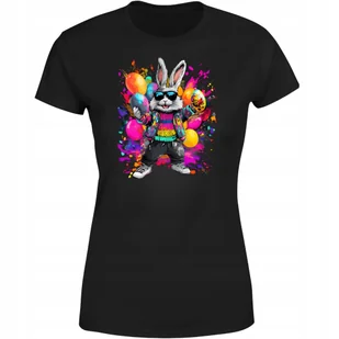 Koszulka damska Kolorowy Stylowy Zając Wielkanocny z jajkami Wielkanoc