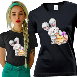 ⭐Koszulka damska z nadrukiem Królik Zając Z Kolorowymi Pisankami Wielkanoc Czarna XL nr wzoru: 102602134430 ✅ KOSZULKA oferta dotyczy 1 szt. krój damski gram...