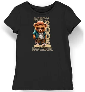 Koszulka damska na 20 urodziny 2005 z misiem dobry rocznik czarna L - Koszulka damska idealna na prezent! KozakNadruki – Polska marka i autorskie projekty! S...