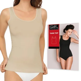 Klasyczny, ponadczasowy Tank-Top na szerszych ramiączkach to gwarancja wyjątkowej wygody i perfekcyjnego wyglądu. Minimalistyczna, skromna kobieca podkoszulka posiada piękny, prosty dekolt starannie wykończony, dzięki czemu wygląda zawsze estetycznie i elegancko.