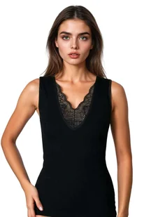 Koszulka damska na szerokich ramiączkach z koronką Ovena czarna S