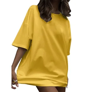 KOSZULKA DAMSKA OVERSIZE DŁUGA DUŻA LUŹNA ŻÓŁTA KRÓTKA SUKIENKA L