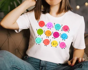 Koszulka damska w kropki kolorowe