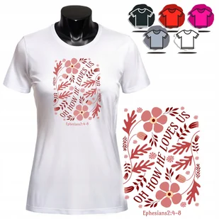 KOSZULKA DAMSKA Z NADRUKIEM T-SHIRT - WZÓR LOVE KWIATY RÓŻOWY PREZENT - XS