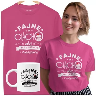 Koszulka dla Dziewczyny w zestawie z kubkiem z nadrukiem Fajne ciacho, ale już polizane i zaklepane kolor różowy
