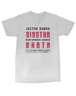 M, L, XL Gramatura : 150 g/m² (biała 145 g/m²) Koszulka bezszwowa Koszulka dla Siostry Jestem dumną Siostrą mojego Brata Zabawna koszulka dla siostry, która dostała ją w prezencie od swojego brata! Nadruk „Jestem dumną siostrą mojego wspaniałego i cudownego brata” oraz dopisek, że to właśnie on kupił tę koszulkę, tworzy humorystyczny i wyjątkowy prezent. Idealna na urodziny, święta, Dzień Rodzeństwa czy każdą inną okazję, aby podkreślić wyjątkową relację między bratem i siostrą. Koszulka wykonana z wysokiej jakości materiału, gwarantuje wygodę noszenia i trwałość nadruku. Doskonały wybór dla rodzeństwa z dystansem i poczuciem humoru! Kluczowe cechy produktu: