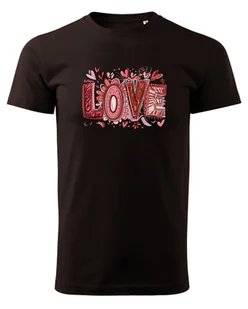 Koszulka na Walentynki Kolorowe LOVE Ciemnobrązowy M