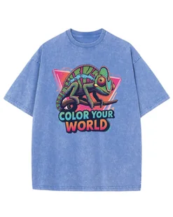 Koszulka oversize efekt sprania Kolorowy Kameleon jasnoniebieski XXL
