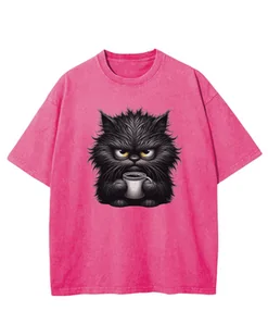 Koszulka oversize efekt sprania nadruk Czarny Kotek różowy XXL