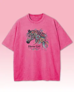 Koszulka oversize Horse Girl Kolorowy Koń Sprana Ciemnoróżowy 3XL