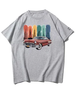 Koszulka oversize Klasyk Samochodowy w Podróży Wycieczka Szara XL