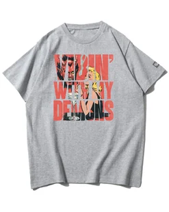 Koszulka oversize Pakt z Demonami Dark Vibes Retro Nadruk Szara 3XL