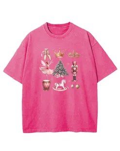 Koszulka oversize Świąteczny Balet Dziadek do Orzechów Różowa XL
