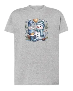 M, L, XL Gramatura : 150 g/m² (biała 145 g/m²) Koszulka bezszwowa Koszulka Świąteczna Personalizowana Zima Rysunkowa Koszulka „Świąteczna Personalizowana Zima Rysunkowa” to wyjątkowy projekt, który wprowadzi Cię w ciepły, zimowy klimat. Nadruk przedstawia uśmiechniętego bałwanka w niebieskiej czapce i szaliku, otoczonego zimowymi detalami – kubkiem gorącej czekolady, butami, pierniczkami i gałązkami świerku. Całość utrzymana jest w pastelowej, rysunkowej stylistyce, dzięki czemu nadruk wygląda przytulnie, uroczo i bardzo świątecznie. Największym atutem tego wzoru jest możliwość personalizacji imienia na czapce bałwanka – dzięki temu koszulka staje się jedyna w swoim rodzaju i idealnie nadaje się na prezent dla bliskiej osoby.