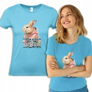 ✨KOSZULKA DAMSKA TURKUSOWA✨ ROZMIAR: S Koszulka z motywem uroczego króliczka to idealny prezent dla każdej osoby, która kocha małe i słodkie kicusie. Na każd...
