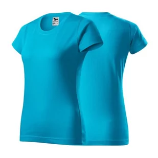 Koszulka turkusowa z krótkim rękawem z logo na sercu damska z nadrukiem logo firmy 160g BASIC134 kolor 44 koszulka krótki rękaw