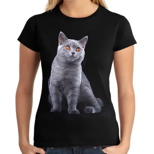 Koszulka damska z szarym kotem, wykonana ze 100%, miękkiej bawełny. T-shirt z motywem szarego kota brytyjskiego będzie idealną propozycją na prezent dla miło...