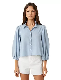 Koton Damska koszulka oversized Viscose Puff Sleeve Check Button Detail Shirt, Blue Check (03t), 38