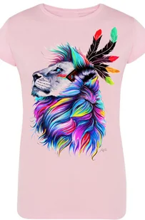 Lew Kolorowy Damski T-shirt Modny Nadruk Rozm.L
