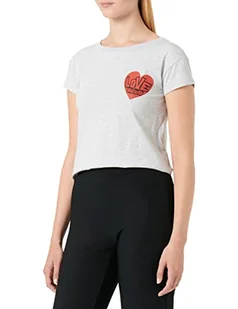 Love Moschino Damska koszulka bokserska z krótkim rękawem z nadrukiem czerwonego serca, Melange Light Gray, 40