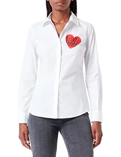 Love Moschino Damska koszulka slim fit z długim rękawem z nadrukiem czerwonego serca, optical white, 44