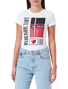 Love Moschino Damska koszulka slim fit z krótkim rękawem z nadrukiem oczu i cekinami, optical white, 40