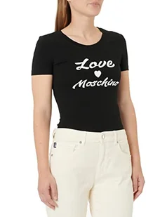 Love Moschino Damska koszulka z krótkim rękawem z Cursive Brand Print, czarny, 44
