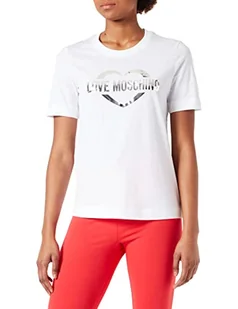Love Moschino Damska koszulka z nadrukiem serca w srebrnej folii, Optyczny biały, 38