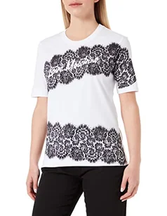 Love Moschino Damska koszulka z ręcznie wykonanym nadrukiem koronkowym, Optyczny biały, 40