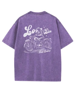 Męska koszulka oversize efekt sprania Motocykl Kobieta Wolność Fioletowa L