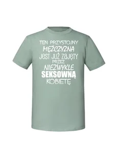 Męska koszulka z nadrukiem - TEN MĘŻCZYZNA JEST JUŻ ZAJĘTY PRZEZ SEKSOWNĄ KOBIETĘ Miętowy XXL