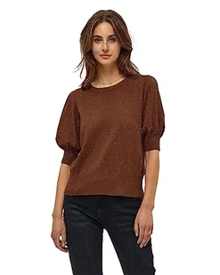 Minus Damska koszulka z dzianiny Liva z okrągłym dekoltem i półrękawem, 5049met ciemny cynamonowy brąz metaliczny, XS
