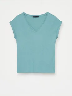 T-shirt z krótkim rękawem i dekoltem w kształcie litery V. Uszyty z materiału o wysokiej zawartości bawełny.