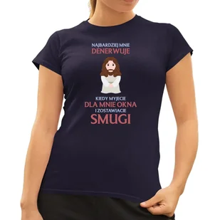 Najbardziej mnie denerwuje kiedy myjecie dla mnie okna i zostawiacie smugi - damska koszulka na prezent Granatowa