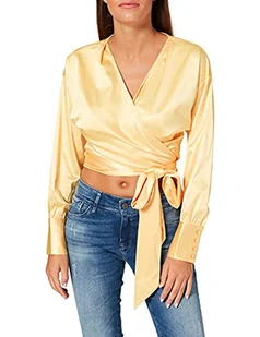 NEON COCO Long Sleeve Satin Jedwabny Wrap Cropped Blouse Koszulka damska, Żółty (Yellow C18), S