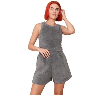 OHS Racerback crop tank top top gładki jednolity miś polar noc sen odzież domowa bez rękawów okrągły dekolt podstawowy przycięty top, Ciepły szary, 32-34
