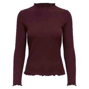 Wybierz damski top z długim rękawem marki Only. Ten t-shirt posiada wysoki kołnierz oraz długie rękawy, wykonany jest z prążkowanego i elastycznego materiału dla optymalnego komfortu. Jego bordowy kolor to must-have w Twojej garderobie na jesień i zimę. Uszyty w 65% z poliestru, 30% wiskozy i 5% elastanu, łączy styl z funkcjonalnością. Idealny na różne okazje, łatwo komponuje się z innymi elementami Twojej kolekcji.