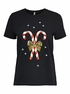 ONLY Damski T-shirt 'Onlxmas Yrsa' Boże Narodzenie Reg S/S Top JRS, Czarny/nadruk: laska cukierkowa, S