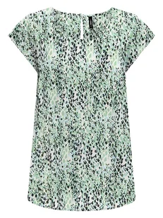 Koszulka w kolorze czarno-turkusowym - zrównoważony rozwój: w 100% z wiskozy LENZING ECOVERO - dekolt: okrągły - zapięcie: guzik na plecach - krój: prosty - wzór: