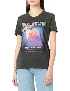 ONLY Onllucy Reg S/S Universe Top Box JRS T-Shirt damski, Czarny/nadruk: believe, S