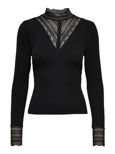 ONLY Onltilde L/S High Neck Lace Top JRS Noos koszulka z długim rękawem, Czarny/Szczegóły: czarna koronka, XS