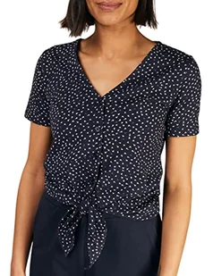 People Tree Damska koszulka z nadrukiem liścia Evony, wielokolorowa granatowa marynarka, 14