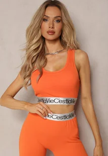 Pomarańczowy Top Sportowy Biustonosz Elastyczny Prążkowany z Ozdobną Gumą Waslema
