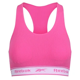 Reebok Damski bezszwowy prążkowany top ze zdejmowanymi podkładkami, bez fiszbin z markowym elastycznym ściągaczem i wycięciem na plecach w kolorze różowym, różowy, M