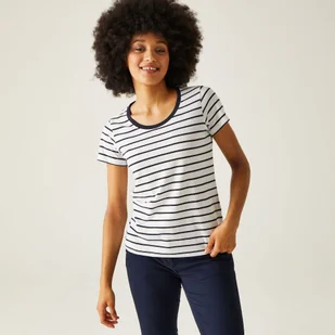 Regatta damska koszulka z krótkim rękawem Pekin Regular Fit Plain Dekolt w serek White (White/Navy 052) 10 UK(36 EU) 019.17-052