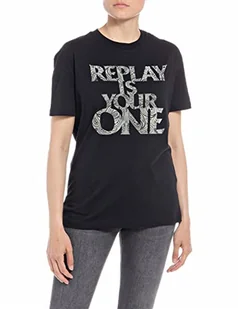 Replay T-shirt damski z krótkim rękawem z napisem, 098 BLACK, XXS