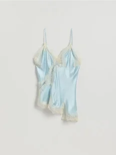 Reserved - Asymetryczny top z koronką - jasnoniebieski