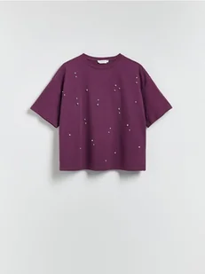 Reserved - Bawełniany t-shirt z aplikacją - ciemnofioletowy